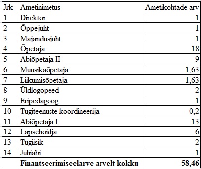 Tartu Karlova Lasteaed töötajate koosseis alates 01.09.2025: